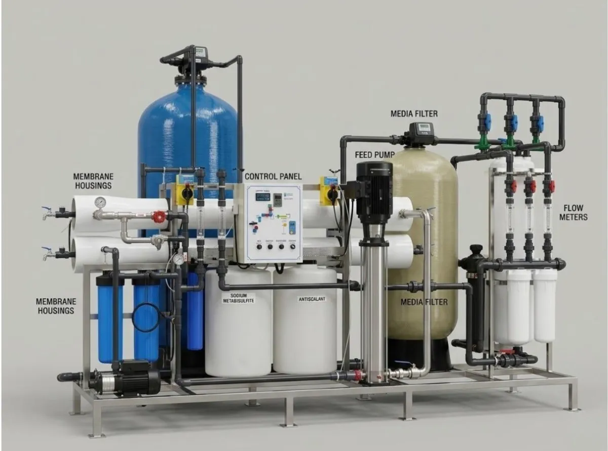 EFLO SEP. Settleable Solids can be easily removed by gravitational lamella settlers combined a with screen, free separator, a modified EFLO SEP. If kitchen water is excluded, then it may be possible to omit this stage. Oil EFLO EC. Electro Coagulation to remove colloidal particles, break out oily water emulsions, reduced BOD , remove tints, disinfect and produced settleable and floating flocked sludge. No chemical dosing required. Clarification Tank. To remove sinking and floating sludge. Media Filtration. To remove suspended flocked particles. Disinfection. Sodium hypochlorite dosing will disinfect and provide residual disinfection in the delivery side of recycled gray water back to the residents. Depending on the population served, this equipment can be skid mounted on a single skid or as multiple skids connected on site.